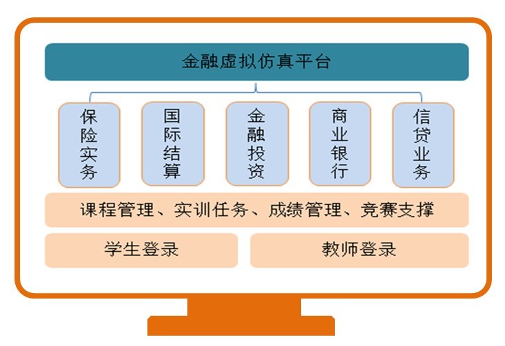 金融虚拟仿真平台包含了保险实务教学平台、国际结算教学平台、金融投资实训平台(证券、期货、外汇)、商业银行岗位技能实训平台、信贷业务及风险管理实训平台五大系统,结合目前国内国际主流金融课程,基本涵盖了金融专业的理论知识和实践技能。 产品特点描述 适合金融类专业进行教学实训使用,主要用于教师组织课程模拟实训时使用,是与相关金融类教学课程配套的教学实训软件产品。教师通过本软件系统可以更好、更方便地组织课程模拟实训,学生通过本软件系统的仿真实训,可以熟悉保险公司的全业务流程及业务规范,理论接合实操训练,在教中学,学中做,通过实际操作训练加深对理论知识的理解,同时增强学习兴趣,达到寓教于乐的目的。 产品特点 1适合保险、金融保险类专业进行保险实务教学实训使用,主要用于教师组织课程模拟实训时使用,是与相关保险实务类教学课程配套的教学实训软件产品。 2商业银行岗位技能实习平台是按最新商业银行业务规范及业务流程设计,通过对商业银行相关业务岗位技能进行规划梳理,以面向商业银行新员工岗位培训、高校及职业类院校金融及财经类学生专业实训及实习为主要目的。 3通过模拟的交易环境加强学生对证券、期货、外汇知识的理解,训练学生的实际动手能力,满足专业课程的实验、实习及课程设计任务,为学生走向社会提供一个理论结合实际的实验环境。 4国际结算教学实训模块是在吸收商业银行国际结算系统的基础上,结合国际银行业务教学特点开发而成的,是国际结算、国际金融、国际贸易等相关专业的最佳教学实训软件系统。 产品优势 1结合目前国内国际主流金融课程,基本涵盖了金融专业的理论知识和实践技能。 2理论接合实操训练,在教中学,学中做,通过实际操作训练加深对理论知识的理解,同时增强学习兴趣,达到寓教于乐的目的。 3满足专业课程的实验、实习及课程设计任务,为学生走向社会提供一个理论结合实际的实验环境 4通过模拟实训使枯燥的理论与实际业务操作相结合,让学生更深刻地理解金融业务流程及业务规范并熟练掌握业务及风险管理实际工作技能。