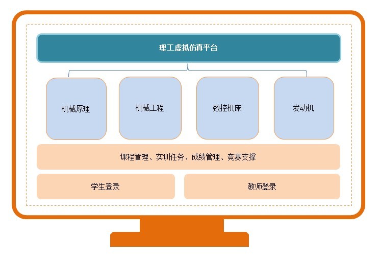 理工类虚拟仿真平台只要包含机械原理、机械工程、数控机床、发动机维护维修等几大部分,随着实践教学改革的不断深入,机械原理实验的教学任务越来越重,仪器设备台套数和实验教师数量相对不足等问题愈加突出。理工类虚拟仿真实训平台可以用最少的经费投入解决以上问题,并进一步激发学生的学习兴趣、增强实验效果、提高实验教学质量。 产品整体描述 软件模拟实验中用到的器材和设备,提供与真实实验相似的实验环境,提供网上实验教学过程管理功能,包括:典型实验库的维护、实验安排、提交实验报告、实验批改、成绩统计、实验答疑等功能模块,可满足高等学校和各类培训机构实验教学环节的需要。 产品特点 1系统建设完成后,呈现给学生形象、生动的虚拟画面,覆盖图文并茂的教学知识点,同时所有学生均可上线互动体验操作,实验教学效果将大幅提升! 2可以在实验室中漫游走动,任意角度,任意距离360度观察实验设备。 3采用三维建模模拟真实的五轴加工中心切削加工及相关参数监控实验场景 4面向机械工程学院相关专业配套开发的可以在网上开展的虚拟仿真课程。 产品优势 1使用信息网络技术对用户进行实验和实训的数据进行采集,再通过虚拟仿真实验教学管理平台进行实验课程安排和实验效果的考察。 2以计算机三维仿真技术模拟真实的实验环境,让用户在虚拟的三维环境下进行实验和实训练习。 3主要是为了帮助解决现实实验中的如下问题:液压元件与系统虚拟仿真实验实验设备造价相对虚拟系统较高,而且还存在运行损耗、日常维护等成本;设备数量有限,大多数学生只能远远驻足观看,不能上线操作;设备操作过程复杂,学生操作不当极易造成设备损坏,同时对学生造成人身伤害。 4虚拟仿真实训平台可以用最少的经费投入解决以上问题,并进一步激发学生的学习兴趣、增强实验效果、提高实验教学质量。